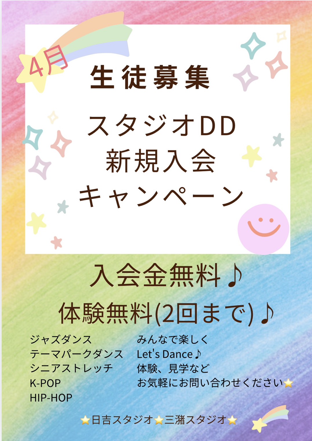 体験レッスン(2回まで)と入会金無料!!